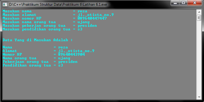Contoh aplikasi sederhana menggunakan metode struct dalam bahasa c struct atau dalam bahasa indonesia artinya struktur merupakan sebuah metode yang digunakan untuk mengelompokkan beberapa variabel yang memiliki tipe data yang berbedacontohnya variabel nama yang menggunakan tipe data string dan variabel nomor induk mahasiswa yang menggunakan tipe data integer. Contoh program struct c data mahasiswa struct bisa kita sebut sebagai tipe data yang kompleks dimana mempunyai sekumpulan variabel atau properti yang di definisikan didalam satu bentuk data. Contoh program di bawah ini dapat menjelaskan cara penggunaan array yang bertipe data buatan. Disini saya menggunakan tools borland c 502. Structure adalah pengelompokkan dari variabel variabel dengan tipe yang berbeda dalam satu nama yang samastructure dideklarasikan dengan reserved word structvariabel variabel yang membentuk suatu structure disebut dengan elemen atau anggota dari structure. Contoh program struct c dan penjelasannya pembahasan materi program struktur menggunakan bahasa c struktur adalah kumpulan variable yang mengacu pada sebuah nama structure dipakai untuk menyatakan informasi yang berhubungankumpulan variabel data yang berbeda type maupun sama yang mengacu pada sebuah nama.