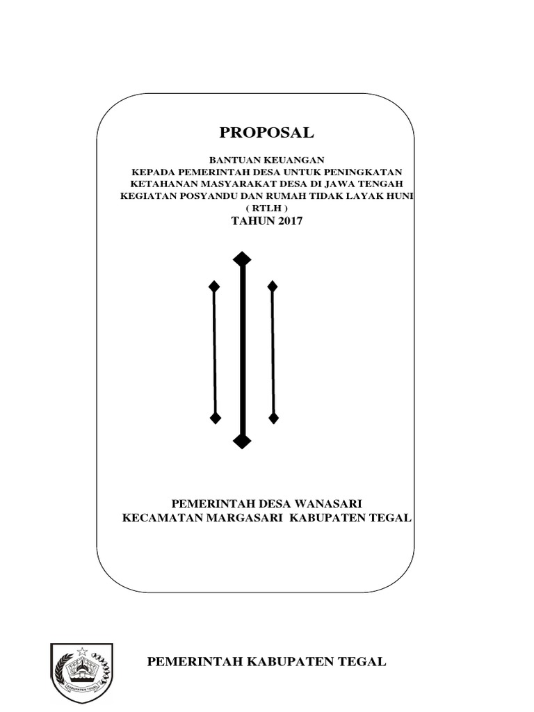 Bantuan keuangan kepada pemerintah desa untuk peningkatan ketahanan masyarakat desa di jawa tengah kegiatan posyandu dan rumah tidak layak huni rtlh tahun 2017. Saya nanti akan memberikan anda contoh yang cukup lengkap.