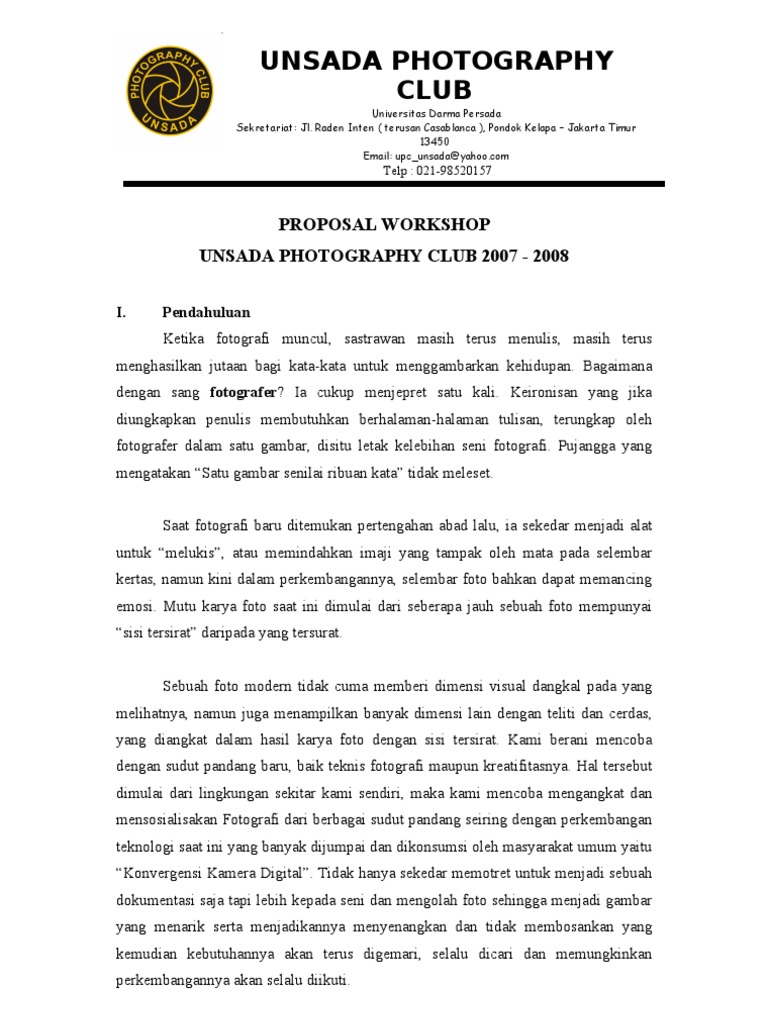 Contoh proposal kegiatan pameran fotografi. Huzaini benculuk cluring telp. Contoh proposal usaha konveski seragam sekolah dan olahraga. Contoh proposal kegiatan bagi anda yang akan menyelenggarakan sebuah kegiatan atau event tapi masih belum tahu mengenai cara penulisannya anda disini akan dijelaskan mengenai tata cara penulisan proposal kegiatan hingga contoh penulisannya. Definisi karya tulis ilmiah menurut ahli. Contoh proposal kegiatan pameran seni rupa di sekolah proposal pameran seni rupa sma negeri 1 cluring jl. Contoh proposal pameran seni fotografi.