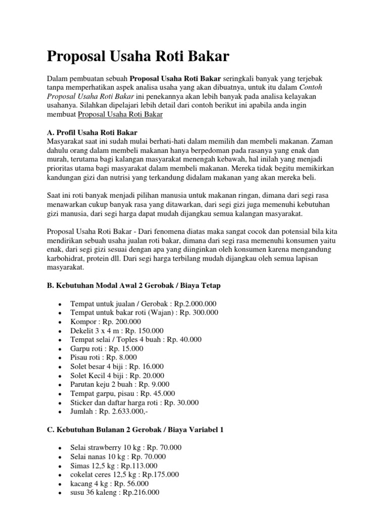 Contoh Proposal Usaha Roti Bakar Contoh Proposal Usaha