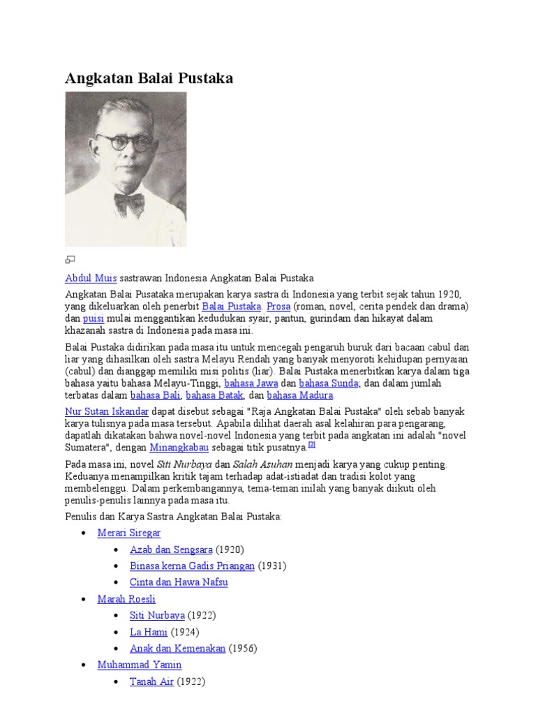 Ya udah tak share aja. Itu pun mereka mencari karya sastra angkatan 60an. Disebut pula sebagai angkatan balai pustaka karna karya karya tersebut banyak diterbitkan oleh penerbit balai pustaka. Sebenarnya angkatan ini dipelopori oleh sebuah penerbit balai pustaka pada tahun 1920 1950. Angkatan balai pustaka karya sastra di indonesia sejak tahun 1920 1950 yang dipelopori oleh penerbit balai pustaka. Padahal masih banyak buku karya sastra sebelum angkatan 60an menarik yang ceritanya erat sekali dengan sosial budaya pada masa lampau.