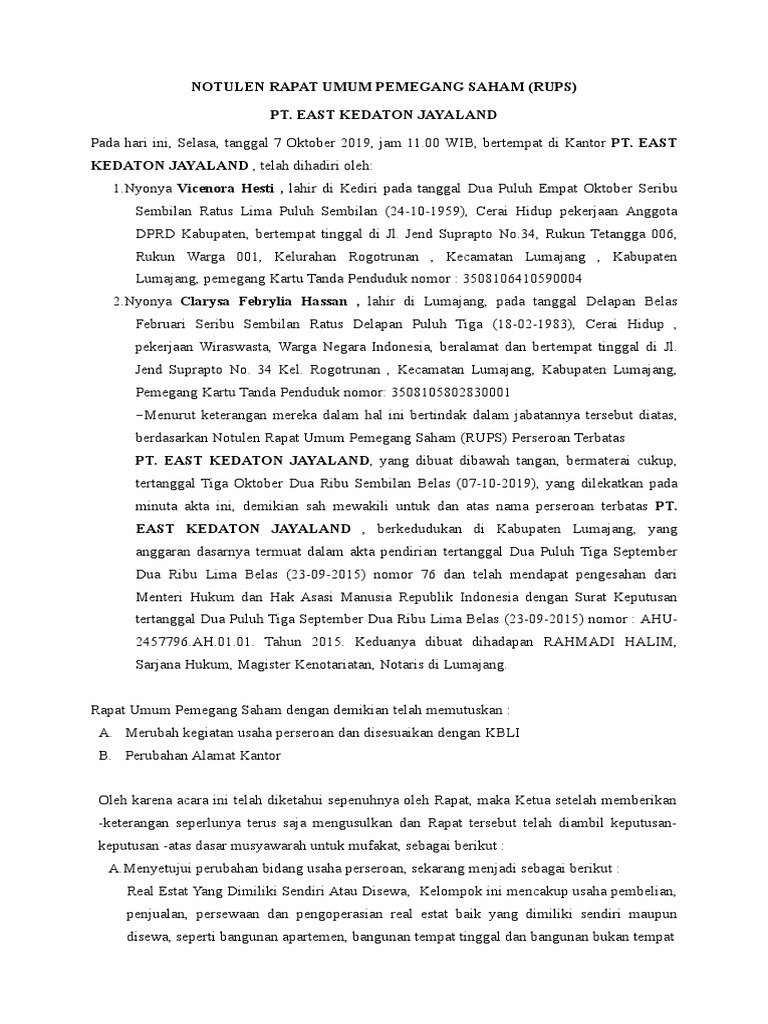Contoh rups dibawah tangan. Apa itu akta di bawah tangan. Nikah di bawah tangan nikah sirri adalah salah satu bentuk permasalahan yang saat ini masih banyak terjadi di negara indonesia. Atas permintaan dari direksi dengan agenda pengangkatan direksi pt. Pada prinsipnya rapat umum pemegang saham rups diselenggarkan secara fisik yaitu dihadiri melalui tatap muka langsung oleh para pemegang saham di suatu tempat tertentu pada waktu tertentu. Contoh hal ini terjadi pada pt. Para pihak dalam kedudukannya tersebut diatas dan berdasarkan anggaran dasar pt.