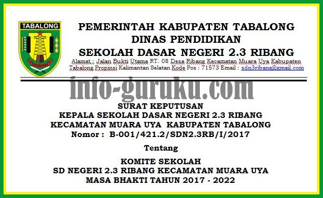 Contoh sk komite sekolah sd 2017. Untuk membuat sk komite sekolah yang baik dan benar. Demikian yang bisa kami sampaikan mengenai keterangan berkas dan share file contoh sk komite sekolah sd smp sma smk format microsoft word. Contoh sk komite sekolah pemerintah kabupaten kampar dinas pendidikan dan kebudayaan sekolah dasar negeri nomor 0 0 1 kasikan kecamatan tapung hulu. Contoh sk komite sekolah sd smp sma 2017 contoh sk komite sekolah ini merupakan format terbaru 2016 2017 yang dapat anda jadikan referensi. Lihat juga berkas penting lainnya terkait dengan komite sekolah. Sk komite sekolah ini dibuat dalam format word doc docx yang mudah untuk diedit oleh bapak ibu sekalian.
