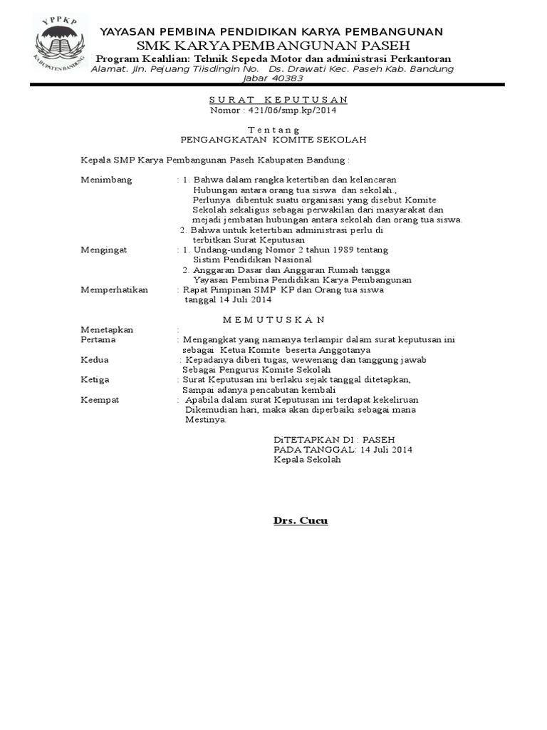 Contoh Sk Komite Sekolah Sd Smp Sma Smk Baik Dan Benar