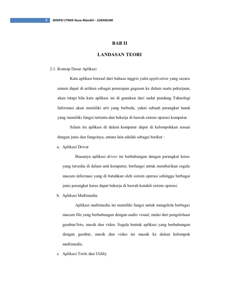 Contoh skripsi bab 2 landasan teori. Makalah adalah salah satu jenis karya ilmiah yang memang kadangkala membutuhkan landasan teori dalam sistematika kepenulisannya. Bab ii landasan teori 2 1 bullying 211 pengertian bullying definisi bullying menurut peka peduli karakter anak adalah. Posted in bahasa indonesia tagged bab 2 landasan teori sistem informasi cara membuat landasan teori contoh landasan teori laporan pkl landasan teori in english macam macam sumber dan bentuk data pengertian landasan teori menurut para ahli perbedaan landasan teori dengan tinjauan pustaka tinjauan teori adalah. Landasan teori sangat penting dalam sebuah penelitian terutama dalam penulisan skripsi peneliti tidak bisa mengembangkan masalah yang mungkin di temui di tempat penelitian jika tidak memiliki acuan landasan teori yang mendukungnya. Bab 2 landasan teori. Selain itu peneliti juga menggali informasi dari buku buku maupun skripsi dalam rangka mendapatkan suatu.