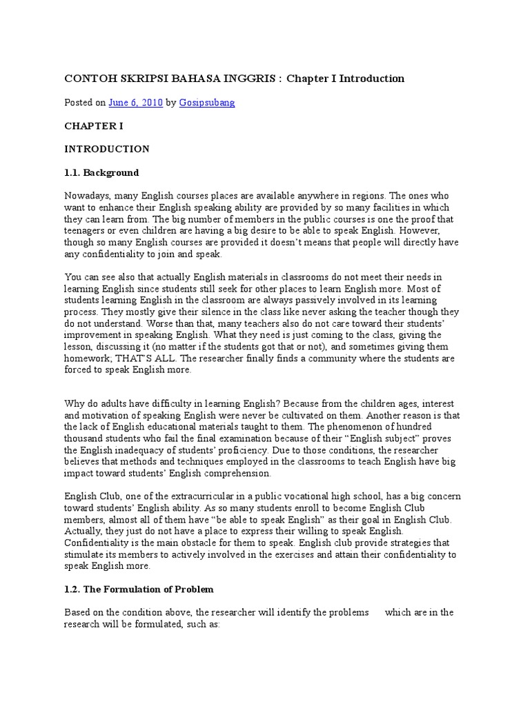 Namun jika anda ingin mendapatkan contoh proposal skripsi pendidikan bahasa inggris ini secara lengkap ataupun ingin judul lain sesuai keinginan anda. Academiaedu is a platform for academics to share research papers. Skripsi bahasa inggris seperti biasanya saya memberikan beberapa judul skripsi yang sudah di acckan dengan kata lain judul skripsi yang saya berikan ini adalah judul skripsi yang sudah menjadi. Kebetulan sekali admin adalah alumni jurusan pendidikan bahasa inggris jadi admin akan memberikan contoh introduction bab 1 skripsi bahasa inggris tentang pengajaran bahasa inggris.