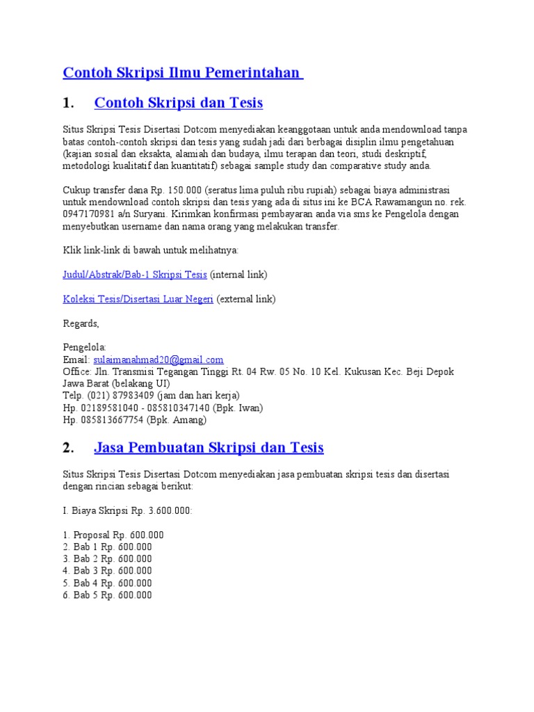 2307 unknown 3 comments. Dapatkan paket dvd contoh skripsi ilmmu sosial terdiri dari 250 judul termasuk contoh skripsi ilmu pemerintahan lengkap dari bab i sampai v. Jika anda sedang mencari contoh skripsi atau mencari contoh judul judul skripsi ilmu pemerintahan di situs ini tersedia berbagai contoh judul yang bisa.
