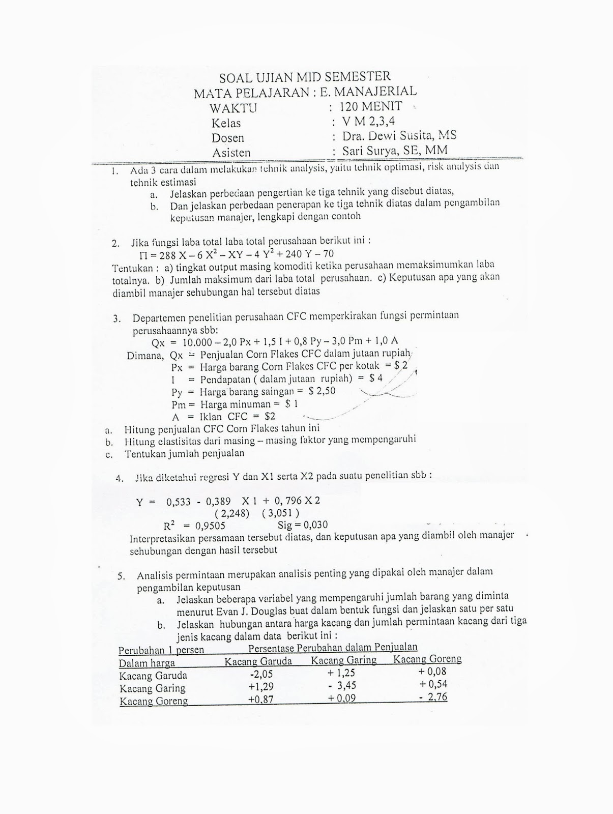 Admin blog contoh soal terbaru 2019 juga mengumpulkan gambar gambar lainnya terkait contoh soal ekonomi manajerial dan jawabannya dibawah ini. Pada saat harga buku rp 10000 per lusin permintaan akan buku tersebut sebanyak 10 lusin dan ketika harga buku turun menjadi rp 8000 per lusin permintaannya menjadi 16 lusin. Contoh file soal uts lengkap kelas 1 6 sdmi semua mata pelajaran 20162017 berikut ini adalah kumpulan dari berbagi sumber tentang contoh soal uts ekonomi manajerial dan penyelesaiannya yang bisa gunakan untuk bank soaldownloadsd dan. Apabila tidak melakukan pembatasan harga maka arus kas bersih perusahaan tersebut setiap tahunsebagai berikut. Soal revisi sd smp sma. Berikut ini adalah contoh soal ekonomi manajerial dan penyelesaiannya uas yang bisa anda unduh secara gratis dengan menekan tombol download yang ada pada tautan dibawah ini.