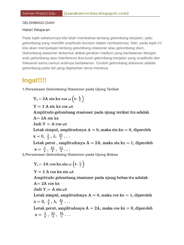 Padahal secara konsep dan pengerjaan soal tersebut cukup mudah. Ingin tahu bagaimana caranya. Gelombang pada dawai gitar dan biola. Besar amplitudo gelombang stasioner akan berubah ubah di antara nilai maksimum dan nilai minimumnya.
