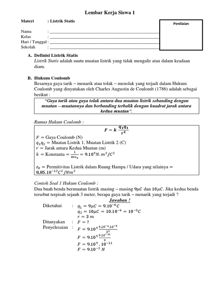 Hukum coulomb ditemukan oleh charles agustin de coulomb seorang fisikawan berkebangsaan perancis pada tahun 1785. Jika muatan ketiga ditempatkan dalam ruang antara q 1 dan q 2 maka tidak akan menghasilkan resultan gaya sama dengan nol. Interaksi muatan dapat dalam bentuk tolak menolak atau tarik menarik. Contoh soal hukum coulomb. Hukum coulomb sesuai dengan namanya hukum coulomb digagas oleh charles augustin de coulomb warga kebangsaan perancis di tahun 1785. September 15 2017 admin leave a comment.