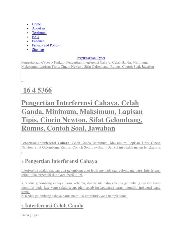 Interferensi cahaya merupakan penjumlahan superposisi dua gelombang cahaya atau lebih yang dapat menimbulkan terbentuknya gelombang lain. Tagcahaya contoh soal fisika fisika kelas xi pembahasan soal fisika rangkuman materi fisika.
