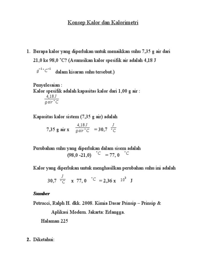 Contoh soal kapasitas kalor. Artikel ini membahas tentang kumpulan contoh soal dan pembahasan tentang kalor jenis dan kapasitas kalor lengkap dengan jawaban dan pembahasannya. Manakah yang lebih cepat panas jika dijemur bersamaan pada terik matahari aluminium atau tembaga. Sebelumnya blog mafia online ini sudah mengulas tentang definisi kalor dan kalor jenis. Kapasitas kalor c perbandingan antara jumlah kalor yang diterima benda dengan kenaikan suhu atau banyaknya panas yang diperlukan untuk menaikkan sejumlah zat tertentu sebesar 1 c atau 1 k disebut kapasitas kalor. Berapakah kalori kalor yang diperlukan untuk memanaskan 2 liter air dari 30 o c menjadi 80 o c jika massa jenis air 1 gramcm 3 dan kalor jenis air 1 kalg o c. Rumus kalor jenis pengertian satuan tabel dan contoh soal by azzahra rahmah posted on december 26 2019 rumuscoid setelah sebelumnya kita membahas tentang rumus tekanan hidrostatis kali ini kita akan membahas materi tentang rumus kalor jenis kita akan jabarkan secara detail mulai dari pengertian rumus satuan dan contoh soal kalor jenis beserta pembahasannya.