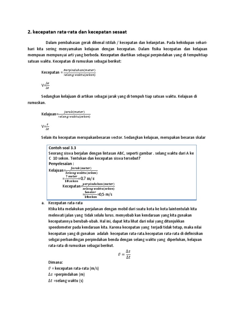 Contoh soal kecepatan sesaat. Dan di dalam rumus kecepatan terdapat rumus kecepatan fisika rumus kecepatan dan kelajuan rumus kecepatan rata rata rumus kecepatan dan percepatan rumus kecepatan jarak dan. Pertama kita ambil turunan persamaannya. Persamaan posisi benda st 4t 3 5t 12 jika s dalam meter dan t dalam detik maka tentukanlah. Contoh soal kecepatan sesaat. Pada saat t 1 sebuah partikel berada di a dengan kecepatan sesaat v 1 dan pada saat t 2 partikel berada di b dengan kecepatan sesaat v 2 percepatan rata rata selama bergerak dari a ke b adalah. Rumuscoid pada kesempatan kali ini kita akan membahas tentang pengertian rumus kecepatan rata rata jarak dan waktu dimana pada pembahasan sebelum nya kita telah membahas soal rumus cepat rambat gelombang.