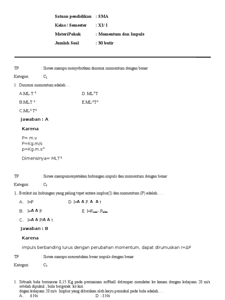 Contoh soal momentum impuls pembahasan jawabannya kelas x10. Download rangkuman contoh soal momentum impuls kelas x10 dalam bentuk pdf klik disini. Contohnya desain faktor keselamatan mobil impuls dan peluncuran roker hukum kekekalan momentum. Contoh soal yang saat terjadi tumbukan ga ada yah kakreply delete. Lagi berproses blog nya hehe reply delete. Contoh soal impuls dan momentum soal no1 berapa besar impuls pada sebuah bola ketika dipukul dengan gaya 50 newton dengan waktu 001 sekon.