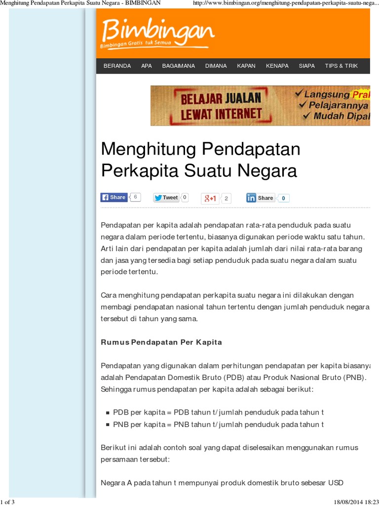 Kali ini kita akan membahas mengenai cara menghitung pendapatan per kapita yang benar. Sebelumnya sudah dibahas mengenai gnp dan gdp secara jelas agar anda bisa lebih memahami mengenai contoh soal berikut ini. Rumus gnp dalam kesempatan kali ini saya akan memberikan informasi mengenai cara menghitung pendapatan per kapita dan beserta rumus yang digunakan. Misalnya pada tahun 2000 tercatat jumlah penduduk indonesia adalah sebanyak 205 juta jiwa maka besarnya pendapatan per kapita riil dan nominal adalah. Pendapatan perkapita sering digunakan sebagai tolak ukur kemakmuran dan tingkat pembangunan sebuah negara. Contoh perhitungan pendapatan perkapita.