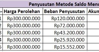 Contoh soal penyusutan aktiva tetap berikut ini terdapat beberapa contoh soal dari metode menyusutan garis lurus saldo menurun berganda dan jumlah angka tahun yang dikemas secara ringkas dan mudah untuk dipahami. Dengan menggunakan metode penyusutan saldo menurun ini jumlah angka penyusutan tiap tahun akan mengalami penurunan penyusutan tiap tahunnya.