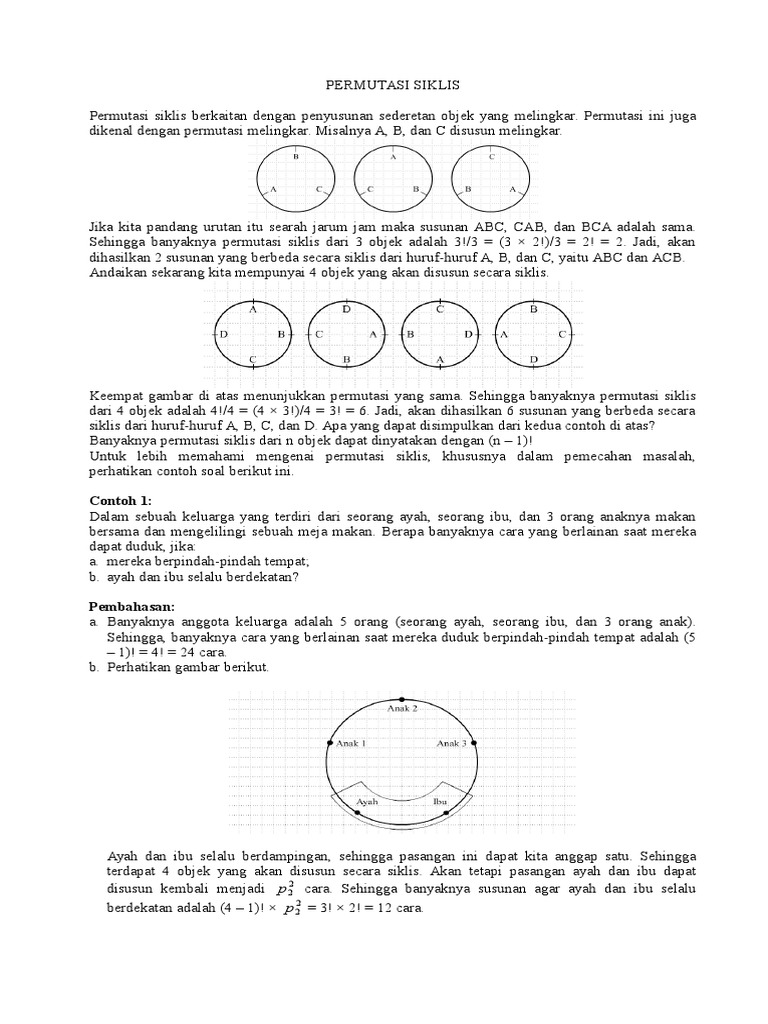 3 orang anak akan duduk bersama di sebuah bangku yang panjang. Permutasi siklis dari n objek adalah n 1. Permutasi siklis adalah permutasi melingkar urutan melingkar. Rumus contoh soal permutasi dan kombinasi pengertian unsur yang sama siklis cara menentukan binomial newton peluang jawaban matematika berikut ini adalah materi lengkap permutasi dan kombinasi. Kumpulan soal mudah sedang sukar. Misalnya a b dan c disusun melingkar.