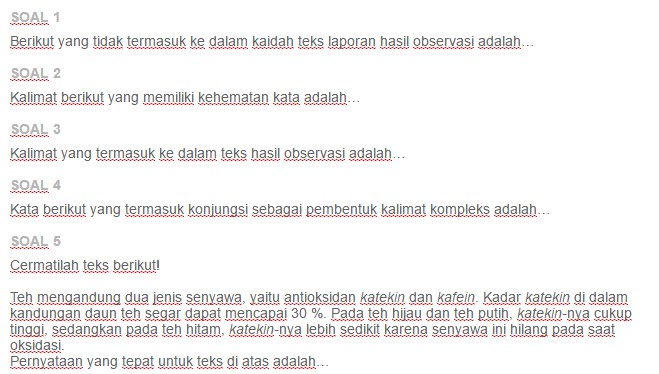 Teks laporan hasil percobaan c. Teks laporan hasil observasi b. Berikut contoh soal pg b. Berikut ini adalah contoh soal pilihan ganda dan jawabannya teks eksplanasi. Soal bahasa indonesia contoh soal teks laporan hasil observasi lho pilihan ganda untuk pas uas kerani blog 051600 menjelang akhir semester salah satu kesibukan seorang guru adalah menyiapkan ulangan akhir semester atau dalam kurikulum 2013 istilahnya dibuah menjadi pas atau penilaian akhir semester. Teks yang memiliki struktur pernyataan umum dan aspek aspek.