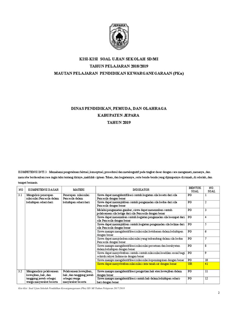 40 Soal Pkn Sd Mi Kelas 4 Dan Jawaban Pilihan Ganda Essay