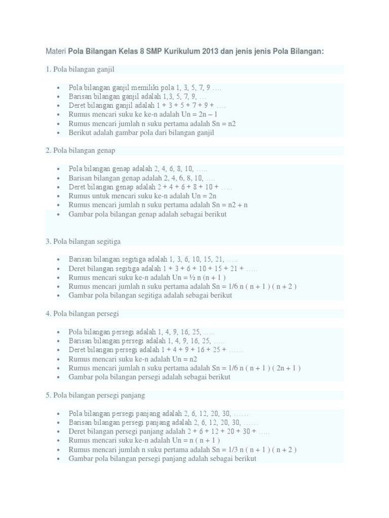 Guru sd smp sma contoh soal pola bilangan kelas 8. Sarana sarana negara kapitalis. Soal soal pola bilangan barisan dan deret. Soal ulangan harian pola bilangan kelas 8 kurikulum 2013 dan kunci jawabannya ini merupakan contoh soal terbaru yang akan saya bagikan bagi bapakibu yang mengampu mata pelajaran matematika kelas 8 smpmts yang telah menerapkan kurikulum 2013. Karena besok akan menghadapi ujian nasional berikut contoh soal dan pembahasannya. Latihan soal tengah semester i ipa kelas 8 kurikulum 2013.