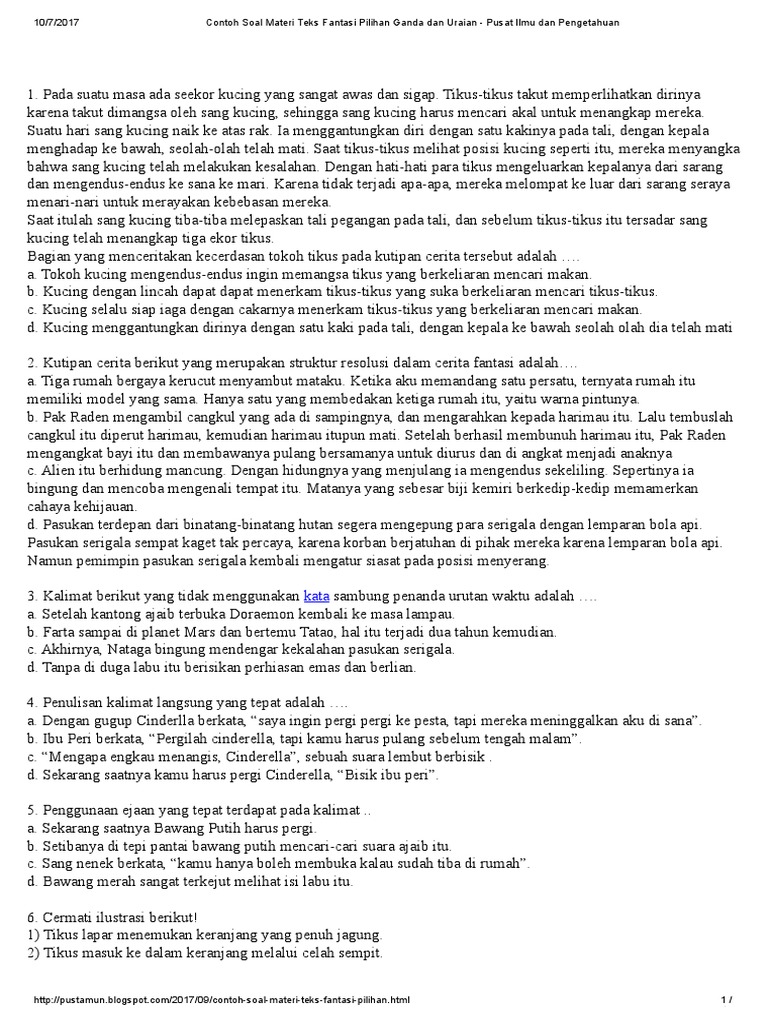 Contoh soal teks fantasi pilihan ganda. Soal pilihan ganda bahasa indonesia paragraf narasi beserta jawabannya ada sekitar 40 butir soal pgpilihan ganda bahasa indonesia tentang teks narasi dan jawabannya yang bisa adik adik smpsmasmk jadikan referensi dalam menghadapi ujian dari guru. Dalam sebuah pembelajaran perlu dilakukan penilaian sekaligus latihan biar siswa sanggup lebih memahami sebuah materi. Penggambaran tersebut dilakukan sejelas jelasnya dengan melibatkan kesan indra. Teks fantasi yang digunakan adalah teks fantasi yang ada dalam buku teks. 50 soal ukg paud dan kunci jawaban penulis cilik. Soal latihan materi teks cerita fantasi pilihan ganda september 04 2019 1.