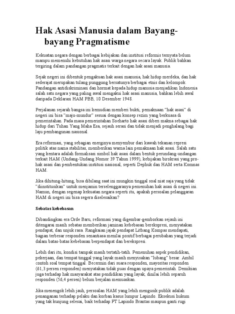 We did not find results for contoh soal. Pandangan tentang hak asasi manusia sangatlah beragam sehingga tidaklah mengherankan jika setiap pakar memberikan pendapat yang berbeda mengenai hak asasi manusia serta macam macamnya. Soal soal tes cpns 2018 online. Share 0 tweet 0. Check spelling or type a new query. Hak asasi manusia adalah seperangkat hak yang melekat pada hakikat keberadaan manusia sebagai mahluk tuhan yang maha esa dan merupakan anugerah nya yang wajib dihormati dijunjung tinggi dan dilindungi oleh negara hukum pemerintah dan setiap orang demi kehormatan serta perlindungan harkat dan martabat manusia merupakan.
