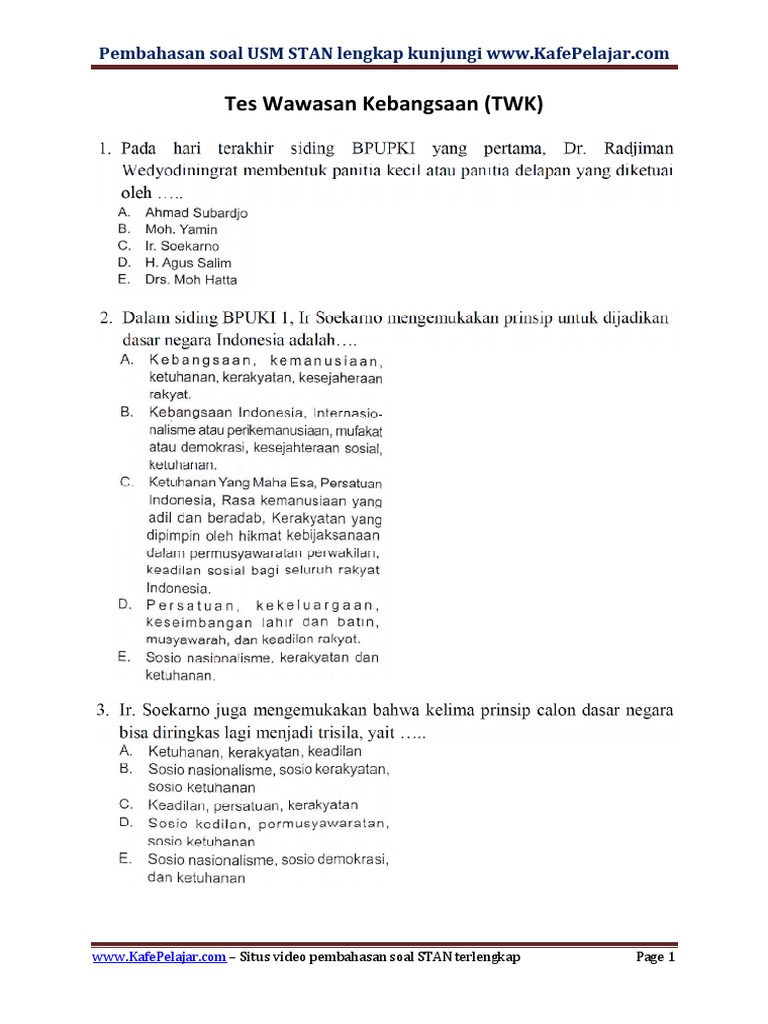 Karena mungkin sebulan lagi akan diadakanya usm stan. Soal soal tiu atau soal soal tkd ini sering dianggap sebagai soal yang susah oleh sebagian orang. Disertai juga dengan bedah materi yang penting untuk menghadapi ujian seleksi masuk pkn stan. Artikel terbaru tengang panduan belajar usm stan bisa lo baca di sini panduan belajar dan tips usm stan 2017. Sebagaimana diinformasikan dalam berbagai media materi dan bahan soal tes ujian masuk pkn stan 20172018 adalah soal seleksi kompetensi dasar skd atau soal tkd tes kemampuan dasar yang terdiri dari terdiri dari tes wawasan kebangsaan twk tes intelegensi umum tiu tes karakteristik pribadi tkp. Maka dari itu kali ini saya ingin membuat posting tentang latihan soal dan materi tkd untuk usm stan.