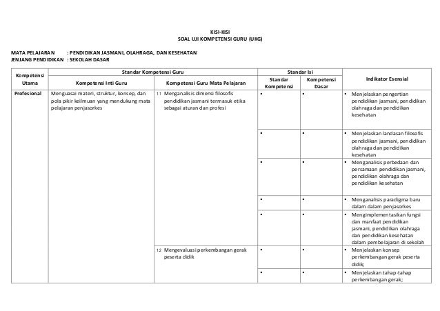 Pada ukg tahun ini ada 2 aspek materi yang akan. Untuk guru jenjang sd sesuai kisi kisi ukg 2015 yang dirilis kemendikbud ada tiga mata pelajaran mapel ukg yaitu guru sd kelas rendah guru sd kelas tinggi dan guru penjaskes sd. Contoh file dowload gratis kisi ukg kelas rendahtinggi pjok sd dan soal soal latihan ukg sma berikut ini adalah kumpulan dari berbagi sumber tentang soal hots penjaskes sma yang bisa gunakan untuk administrasigoogle driveinfo gurusoal ukg dan diunduh secara gratis dengan menekan tombol download biru dibawah ini. Langsung saja berikut ini adalah contoh latihan soal ukg penjaskes sd tahun ini secara online yang. Pasalnya soal yang digunakan dalam ukg tahun 2015 adalah soal pilihan ganda layaknya. Dengan kisi kisi ini dapat memberi gambaran kepada peserta ukg 2015 tentang soal soal yang akan di ujikan.