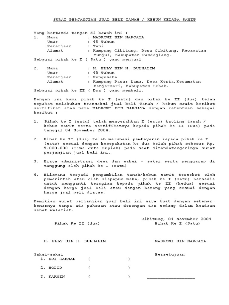 Contoh surat jual beli tanah kebun. Surat ini memang tidak bisa sembarang orang bisa membuatnya. Seperti halnya tanah warisan lainnya sebuah kebun warisan juga boleh diperjual belikan. Meskipun terkadang sangat disayangkan jika sebuah tanah warisan dijual apalagi jika tanah tersebut telah dibuat menjadi kebun yang ditanami tumbuhan yang cukup menghasilkan. Namun pada umumnya hal pernyataan pembebanan biaya ini dibebankan pada pihak kedua atau pembeli. Fb twitter wa line pinterest g linkedin. Yang untuk selanjutnya akan disebut sebagai pihak ke i penjual.