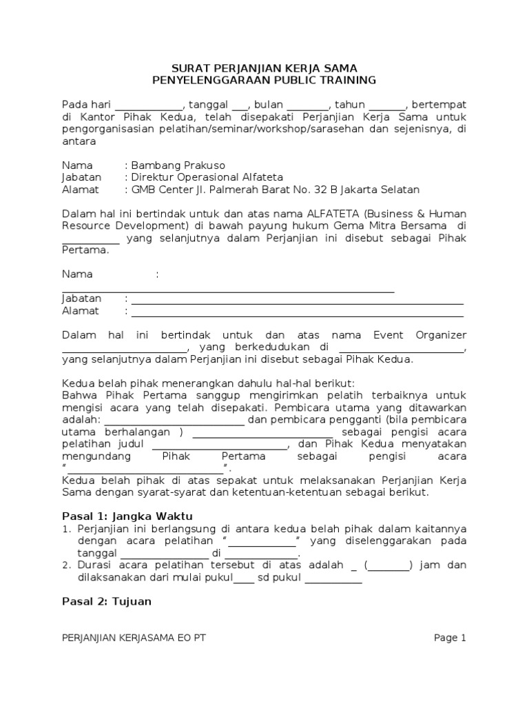 Contoh surat kontrak event organizer dengan klien. Contoh surat perjanjian kerjasama event organizer eo dalam acara perpisahan kkn stkip situbondo feb. Contoh surat perjanjian kerjasama event organizer eo. Hal ini sebenarnya bukan hal yang baru lagi dimana setiap perusahaan tentu ingin bekerjasama dengan perusahaan perusahaan lain agar bisa saling menguntungkan. Contoh surat perjanjian kerjasama wedding organizer have a graphic from the othercontoh surat perjanjian kerjasama wedding organizer in addition it will include a picture of a sort that may be seen in the gallery of contoh surat perjanjian kerjasama wedding organizer. Perjanjian antar dua pihak ini biasa dikenal dengan istilah memorandum of understanding mou. The collection that comprising chosen picture.