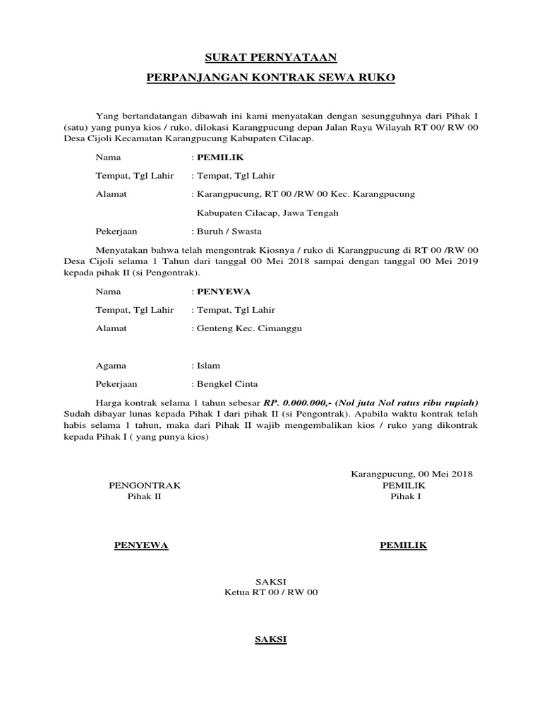Contoh surat kontrak ruko. 5 surat perjanjian sewa menyewa ruko lamudicoid pasal 12 perpanjangan masa kontrak pihak kedua mendapat prioritas pertama dari pihak pertama untuk memperpanjang masa penyewaan berikutnya sebelum pihak pertama menawarkan kepada calon calon penyewa lainnya. Tuntutan hidup primer bisa berupa makan berbusana tempat tinggal atau bahkan pulsa hp. Selain tuntutan hidup primer juga terdapat tuntutan hidup sekunder yang mengacu pada gaya hidup. Contoh surat perjanjian sewa kontrak toko ruko kios di kehidupan kita harus rajin bekerja untuk tuntutan hidup kita. Surat perjanjian ini bersifat mengikat dengan memaparkan hak dan tanggung jawab dari masing masing pihak yang telah disetujui bersama untuk menghindari pertikaian yang berpotensi terjadi di masa depan. Misalnya surat kontrak kerja surat kontrak sewa surat kontrak jual beli surat kontrak hibah dan lain sebagainya.