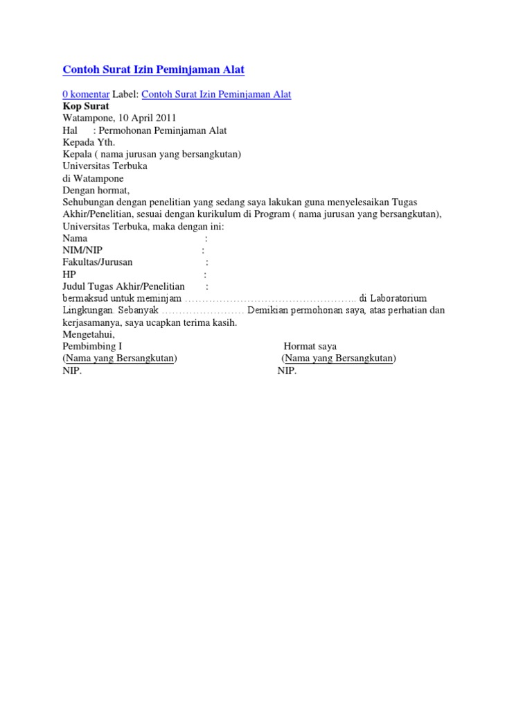 Contoh surat permohonan peminjaman dan pemakaian laboratorium semarang tglblnthn hal. Template surat permohonan peminjaman alat. Nasional surat peminjaman alat kita butuhkan jika berurusan dengan hal yang sifatnya formal atau keorganisasian dan kelembagaan. Bagaimana cara membuat format surat peminjaman alat ke pihak kedua atau ketiga. Walaupun sekarang ini sudah banyak media komunikasi yang canggih namun perusahaan sendiri masih harus tetap menggunakan surat. Perlu diketahui penulisan surat tidak bisa asal saja semua itu karena surat adalah.