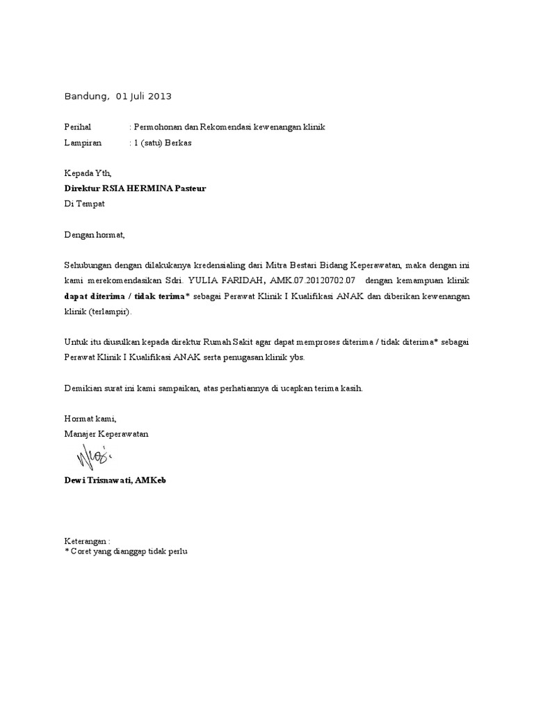 Kepada yth direktur rsia hermina pasteur di tempat dengan hormat sehubungan dengan dilakukanya kredensialing dari mitra bestari bidang keperawatan maka dengan ini kami merekomendasikan sdri. Permohonan dan rekomendasi kewenangan klinik. Permintaan menjadi mitra bestari dari beberapa jurnal ilmiah d tanah air semakin banyak. Contoh surat keterangan domisili lembaga dari desa. Contoh surat permohonan menjadi mitra bestari. Kerjasama yang menguntungkan antar kedua belah pihak memang seringkali dilakoni oleh para pengusaha demi memajukan perusahaan mereka.