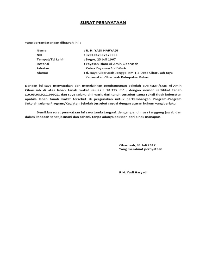 Demikian surat keterangan dan pernyataan ahli waris ini kami buat dengan sebenarnya diatas kertas bermaterai cukup dalam keadaan sehat jasmani dan rohani tanpa ada tekanan maupun paksaan dari siapapun dan apabila dikemudian hari keterangan dan pernyataan kami tidak benar maka kami bersedia dituntut sesuai. 2020 kumpulan contoh terlengkap ditenagai oleh generatepress. Apabila di kemudian hari ternyata ada ahli waris lainnya maka kami bersedia dituntut berdasarkan peraturan perundang undangan yang berlaku dan tidak akan melibatkan pejabat instansi manapun. Surat persetujuan ahli waris menjual tanah rumah mata hukum doc contoh resminya surat merupakan sebuah alat komunikasih yang sudah lama digunakan dari jaman dahulunamun untuk sekarang ini surat cenderung berkembang untuk alat andminitratif pelengkap sebuah dokumen dan biasanya bersift resmi.