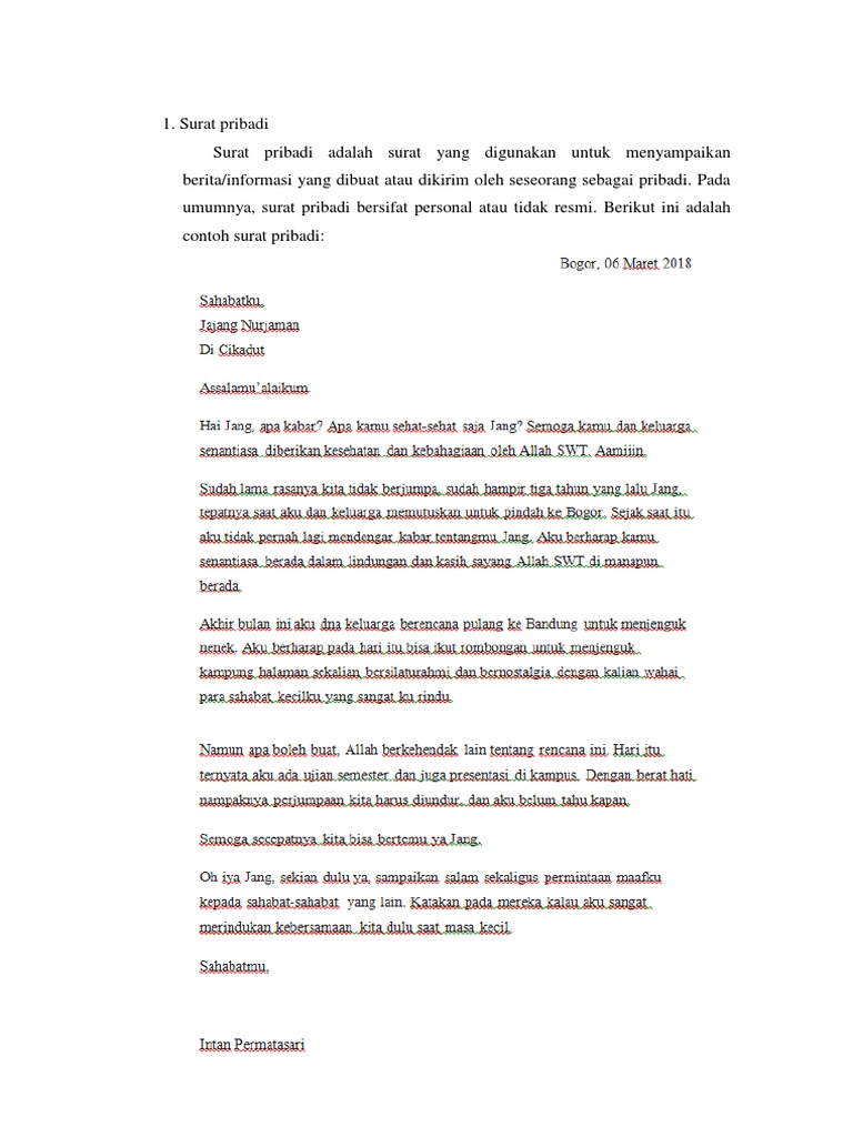 Suci harap nenek dan kakek selal baik baik saya dan selalu berada dalam lindungan allah swt. Contoh surat pribadi pada zaman dahulu untuk memberikan suatu kabar kepada keluarga sahabat kekasih dan lain sebagainya hampir semua orang selalu melakukan kegiatan surat menyuratnamun di era yang serba canggih ini sudah sedikit sekali bahkan hampir tidak ada orang yang melakukan kegiatan surat menyurat seperti dulu. 15 contoh surat pribadi untuk sahabat orang tua keluarga dll paling lengkap seiring dengan perkembangan zaman yang sudah semakin canggih teknologi komunikasi juga tidak mau ketinggalan dan sudah sangat mudah. Nenek dan kakak bagaimana kabarnya. Surat pribadi untuk orang tua ini sebenarnya tidak jauh berbeda dengan surat pribadi lainnya. Orang orang saat ini lebih memilih pengiriman pesan secara instan semisal melalui email sms whatsapp dan media media mengirim pesan lainnya.