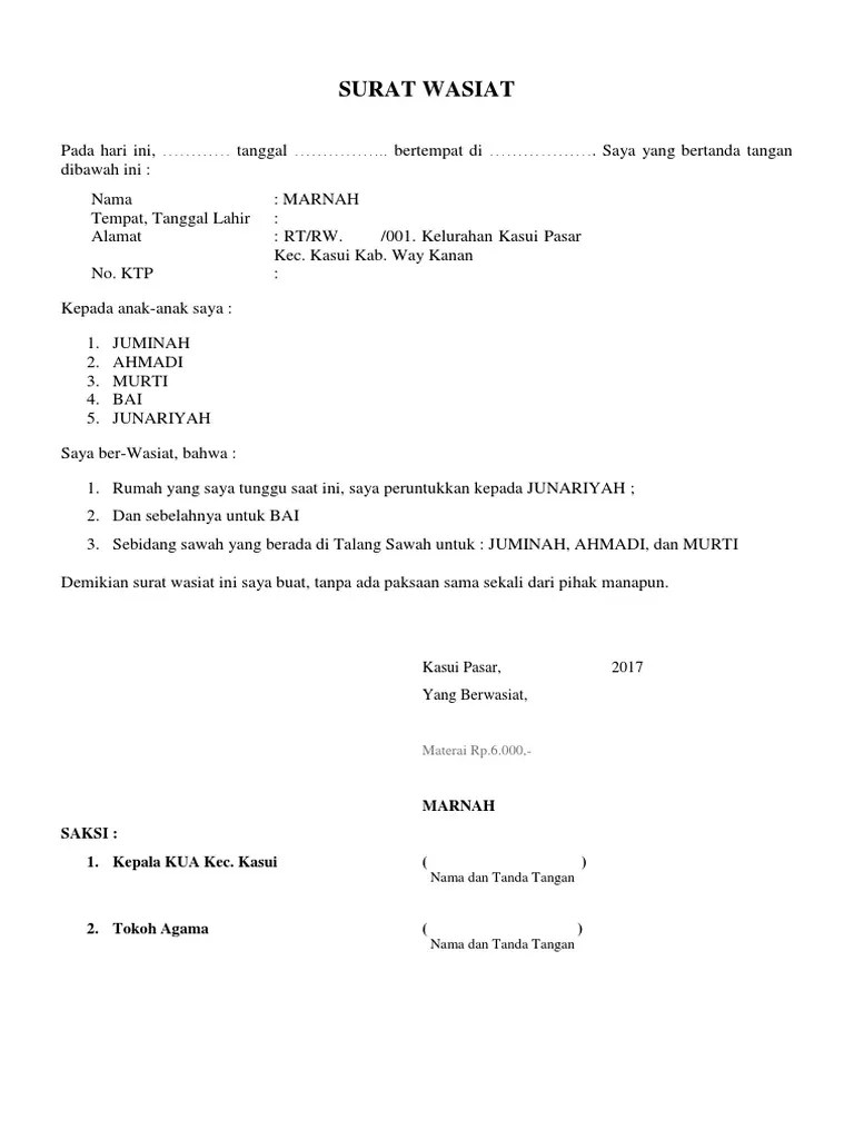 Contoh format surat wasiat harta warisan harta warisan merupakan salah satu hal yg umum dipermasalahkan didalam setiap keluarga karena hal tersebut menyangkut sebuah harta yg akan diberikan kepada ahli waris. Wasiat pada hari ini rabu tanggal satu bulan dua tahun dua ribu sebelas 01 02 2012 telah berhadapan dengan saya natalia sh notaris berkeduduk. Contoh surat wasiat di malaysia contoh surat wasiat harta warisan contoh surat wasiat keluarga contoh surat wasiat waris contoh surat lamaran kerja contoh surat kuasa contoh surat pernyataan contoh surat pengunduran diri contoh surat perjanjian contoh surat undangan perkhidmatan tulis wasiat dan hibah harta sepencarian.