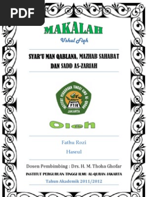 Para ulama menjelaskan bahwa syariat sebelum kita ialah hukum hukum yang telah disyari. Ajaran agama yang telah dihapuskan oleh. Syaru man qablana adalah syariat yang diberlakukan untuk kuam kaum terdahulu sebelum turunnya al quran sebagai syariat terakhir yang dapat digunakan hingga akhir zaman. Rumusan masalah berdasarkan latar belakang di atas dapat diambil rumusan masalah sebagai berikut. Pembagian syaru man qablana dan contohnya. Pengertian syaru man qablana syar u man qablana ialah syari at yang diturunkan allah kepada umat sebelum kita yaitu ajaran agama sebelum datangnya ajaran agama islam seperti ajaran agama nabi musa isa ibrahim dan lain lain.