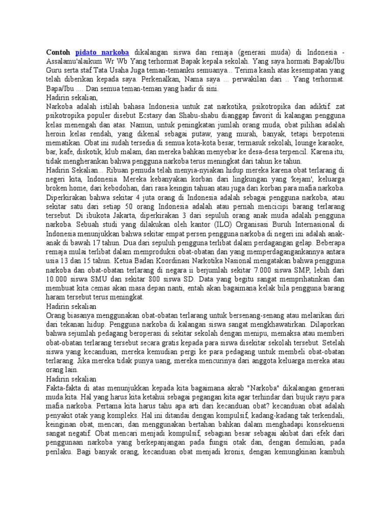 Contoh teks diskusi tentang narkoba terbaru teks diskusi adalah teks yang di dalamnya berisikan sajian tentang perbedaan pendapat terhadap suatu peristiwa fenomena atau kejadian tertentu yang ada di lingkungan masyarakat. Penyusunan teks ini terdiri dari 4 struktur yaitu isu argument mendukung argument menolak serta kesimpulan. Contoh teks diskusi tentang narkoba. Contoh teks diskusi tentang bahaya narkoba ini akan menjadi salah satu alat untuk mencari solusi yang tepat. 9 contoh teks diskusi pengertian struktur unsur jenis untuk pembahasan kali ini kami akan mengulas mengenai teks diskusi yang dimana dalam hal ini meliputi contoh pengertian struktur unsur dan jenis nah agar dapat lebih memahami dan dimengerti simak ulasan selengkapnya dibawah ini. 2 contoh teks eksposisi tentang narkoba beserta strukturnya written by ivanwira saturday september 23 2017 add comment yoo para pembaca kali ini saya akan membagikan 2 contoh teks eksposisi tentang narkoba beserta strukturnya yang merupakan salah satu materi pembelajaran bahasa indonesia yang mungkin teman teman butuhkan untuk mengerjakan tugas.