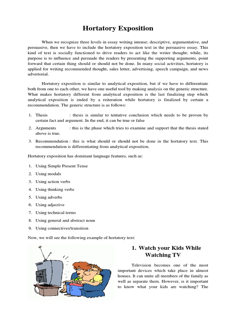 1the importance of speaking english. Pendapat atau alasan yang dipaparkan oleh. Ide atau teori yang ingin disampaikan oleh penulis arguments. Tentang 1500000000 orang di dunia berbahasa inggris. Hortatory exposition is a type of spoken or written text that is intended to explain the listeners or readers that something should or should not happen or be done. Generic structure teks hortatory exposition seperti jenis tkes lainya dalam bahasa inggris yang memunyai masin masin pola penyusunan pemaknahan yang diwujudkan dengan paragraf per paragraf sebuah contoh hortatory expostion akan diatur berdasarkan unsur berikut.