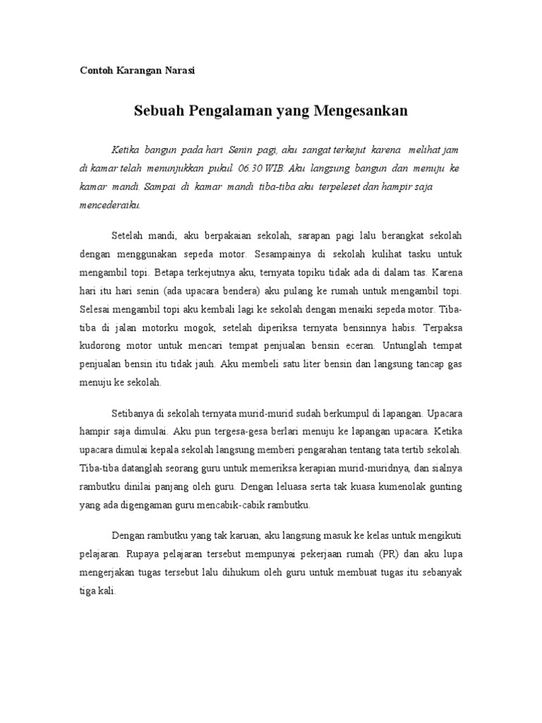 Contoh Paragraf Narasi Pengalaman Pribadi Fiksi