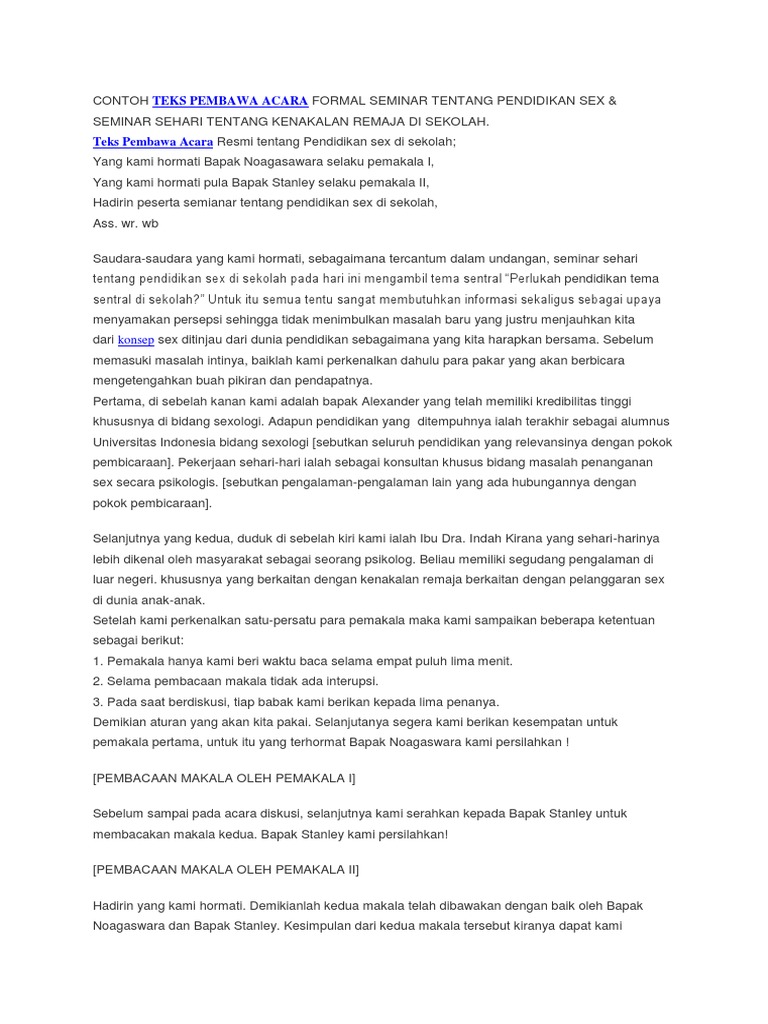 Keberadaan mc diperlukan untuk memandu jalannya sebuah acara supaya sebuah acara tersebut bisa berjalan dengan lancar baik serta. Teks mc non formal mc atau sering disebut juga dengan pembawa acara yaitu seseorang yang bertugas untuk memimpin berjalannya suatu acara baik dalam acara formal ataupun non formaldengan adanya pembawa acara maka diharapkan acara yang diselenggarakan bisa berjalan lancar dan tertata rapi. Teks pembawa acara formal seminar. Contoh teks mc atau teks pembawa acara mc atau master ceremony merupakan seseorang yang memimpin jalannya sebuah acara baik itu acara formal maupun acara non formal. Hanya ada beberapa bagian yang membedakan diantara keduanya. Baik kali ini saya akan memaparkan contoh.