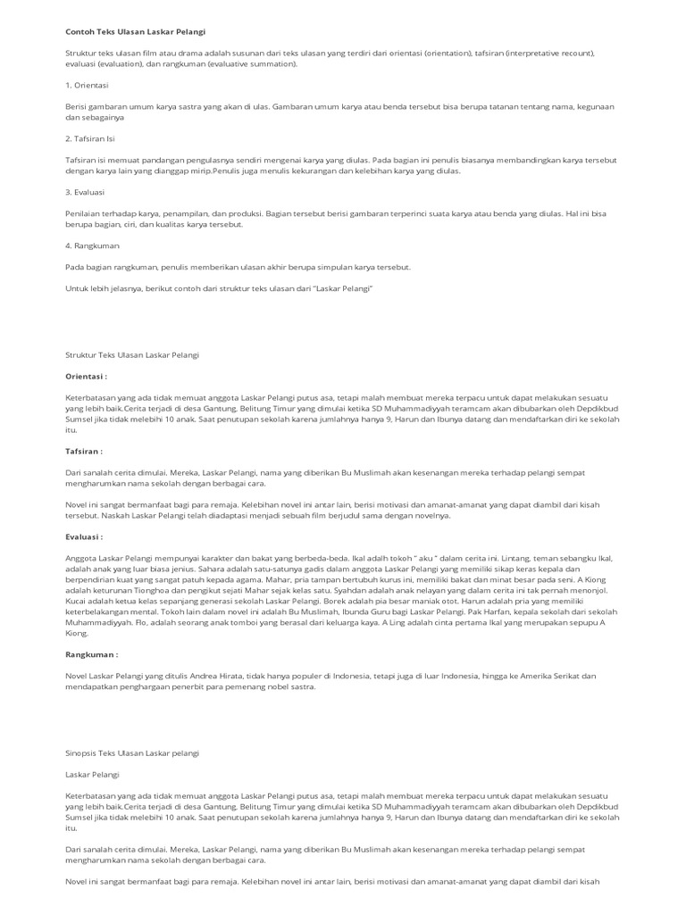Contoh teks ulasan teks ulasan atau yang juga biasa disebut sebagai resensi ini dibuat untuk memberikan penilaian terhadap karya seseorang baik itu dalam bentuk buku film musik ataupun karya lainnya. Pengertian teks ulasan adalah teks yang berisi ulasanpenilaianreview terhadap suatu karya film novel buku cerpen drama. Pada saat kita membaca buku kita harus mencerna buku bacaan tersebut dengan seksama agar kita dapat memahami isinya. Bisa juga berupa ulasan yang buruk tergantung dari pandangan sang pengulas. Adapun tujuan teks ulasan untuk menunjukan sudut pandang atau keberpihakan penulis terhadap suatu. Ulasan tersebut bisa berupa ulasan baik.