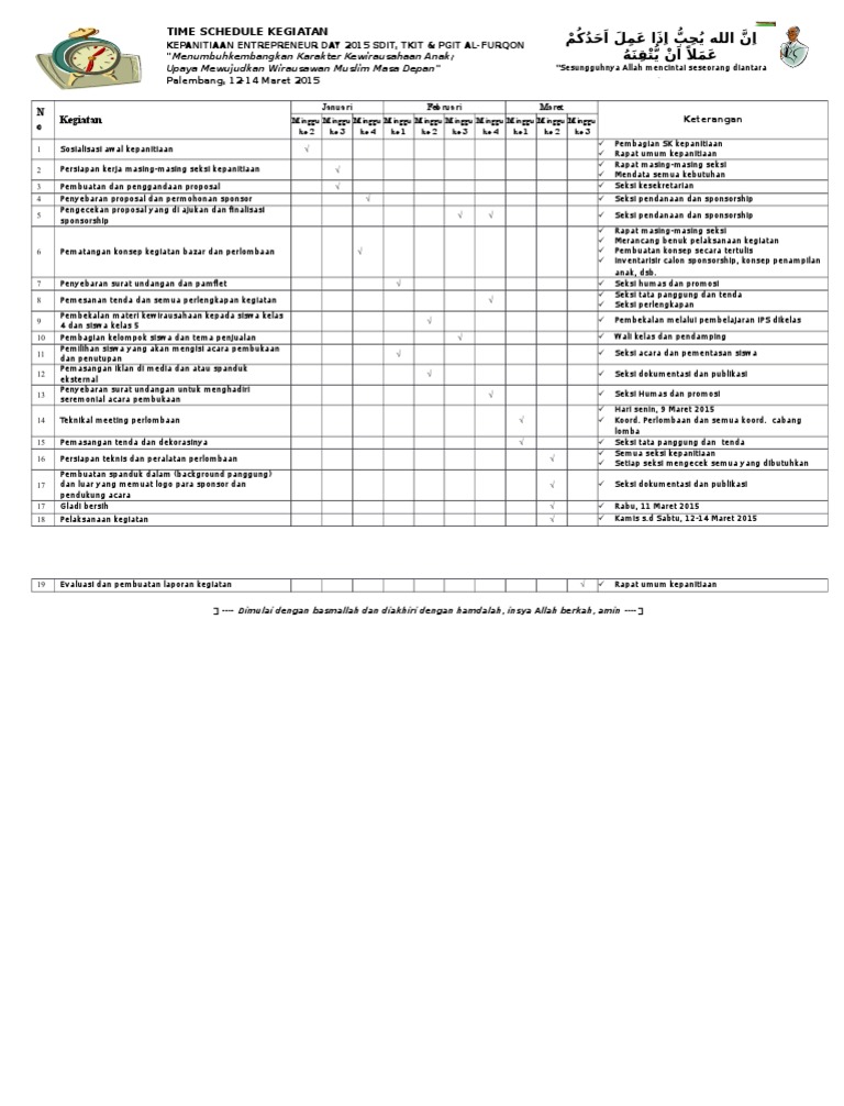 Contoh time table kegiatan. 0919 denawi usman. Surat menyurat 1 minggu manajemen. Rumus excel lengkap materi kali tentang cara mudah membuat jadwal kegiatan dengan rumus excelkalo pada postingan yang lalu kita membahas tentang cara membuat laporan keuangan dengan rumus excel kali ini kita berdiskusi masalah tata cara membuat time schedule suatu kegiatanagar dalam pembuatan jadual tersebut lancar dan cepat kita gunakan rumus yang ada di excel. Cara membuat jadwal waktu pelaksanaan atau time schedule pekerjaan sipil. 150000 dibagi dengan grand total didapat di kalikan 100maka bobot yang di dapat dalam prosentase pekerjaan adalah 0099399. Contoh bentuk laporan qc.