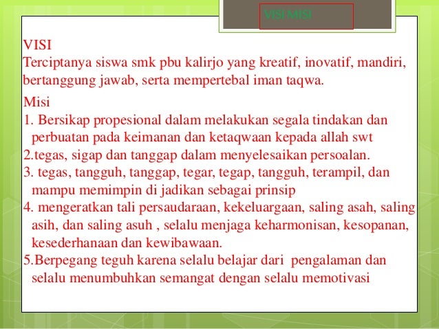 Salam dari saya mantan ketua osis sma negeri 2 balikpapan periode 20132014. Contoh visi misi osis smk. Visi dan misi tersebut tentunya harus dapat dipertanggung jawabkan agar terwujudnya sebuah tujuan yang diinginkan oleh seluruh warga sekolah tersebut. Contoh visi misi osis contoh visi misi organisasi contoh visi misi bem contoh visi misi hidup contoh visi misi menikah dll. Itulah penjelasan singkat mengenai visi misi osis smp visi misi osis sma visi misi osis smk. Ini tidak dapat dipisahkan dari latar belakang lembaga pendidikan yang mengutamakan keterampilan daripada teori.